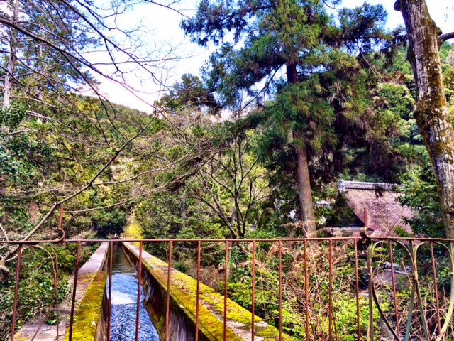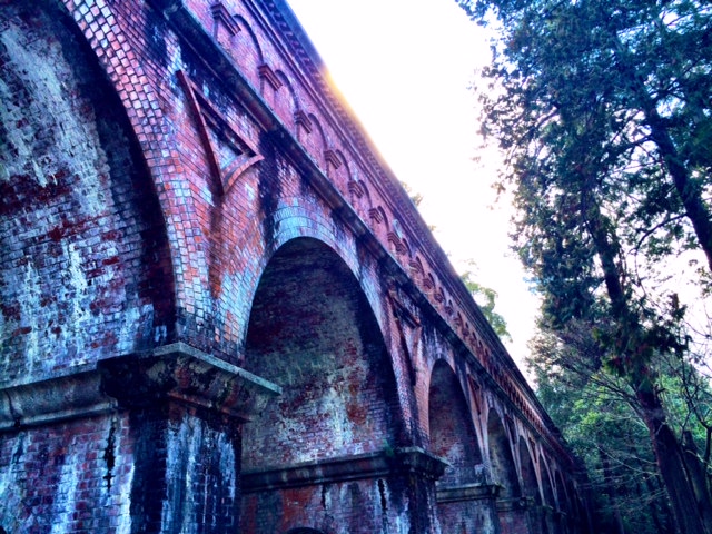 Old train tracks near the exit of Keage Station. I was lucky enough to be in Kyoto for cherry blossom season, and this was a gorgeous spot to take photos. You’ll want to start your walk from this area. If you head down a bit you’ll see a path that leads off to the right. Follow that path along the top of an aqueduct and meander your way over to the many temples in the area.If you see these pipes, you’re heading the right way. Bonus of a gorgeous view of Kyoto laid out below you.Just keep following the aqueduct! You’ll really feel like you’re in another world in this area. Giant pine trees and shrines surround on every where you look. I’m a huge fan of the brilliantly green moss that seems to cover everything.Follow small forest paths to discover places others may not stumble upon. There are many pathways to take, but don’t worry, you won’t get lost.Make sure you look up. The detailing on temples and shrines is true artistic mastery.The path will lead you to Nanzen-ji. Just follow the wooden signposts if you’ve gotten lost at all.The architecture on the grounds of Nanzen-ji, to me, looks half ancient Rome, half ancient Japan. Everything is covered in moss and is absolutely otherworldly.Keep your eyes open for temple cats! I always seem to stumble upon at least one while visiting a temple or shrine. Hopefully they’re good luck!More of the beautiful arches at Nanzen-ji.
